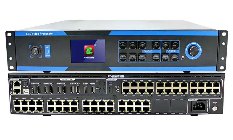 ZH-Z56 4K二合一視頻處理器是中航軟件為滿足LED大屏安裝方便精心打造的一款產品。支持HDMI、DP等高清信號四畫面任意漫游輸入;最大可接收4096*2160@60Hz像素的高清數字信號,支持56路千兆網口輸出,單機帶載支持最寬16384像素,或最高8192像素的大屏。采用全新通信架構,高刷新、高亮度、全新灰度掃描引擎,納秒級同步,惡劣通信狀態仍能保持通信順暢,讓廣大用戶感受更多彩、更美好的LED世界!