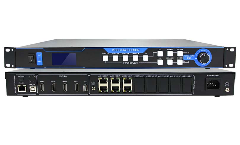 ZH-Z6Q 三畫面視頻處理器視頻處理器是中航軟件為滿足LED大屏安裝方便精心打造的一款產品。支持HDMI/USB高清信號輸入;最大可接收4096*2160@30Hz像素的高清數字信號,支持6路千兆網口輸出,單機帶載支持最寬16384像素,或最高4320像素的大屏。采用全新通信架構,高刷新、高亮度、全新灰度掃描引擎,納秒級同步,惡劣通信狀態仍能保持通信順暢,讓廣大用戶感受更多彩、更美好的LED世界!