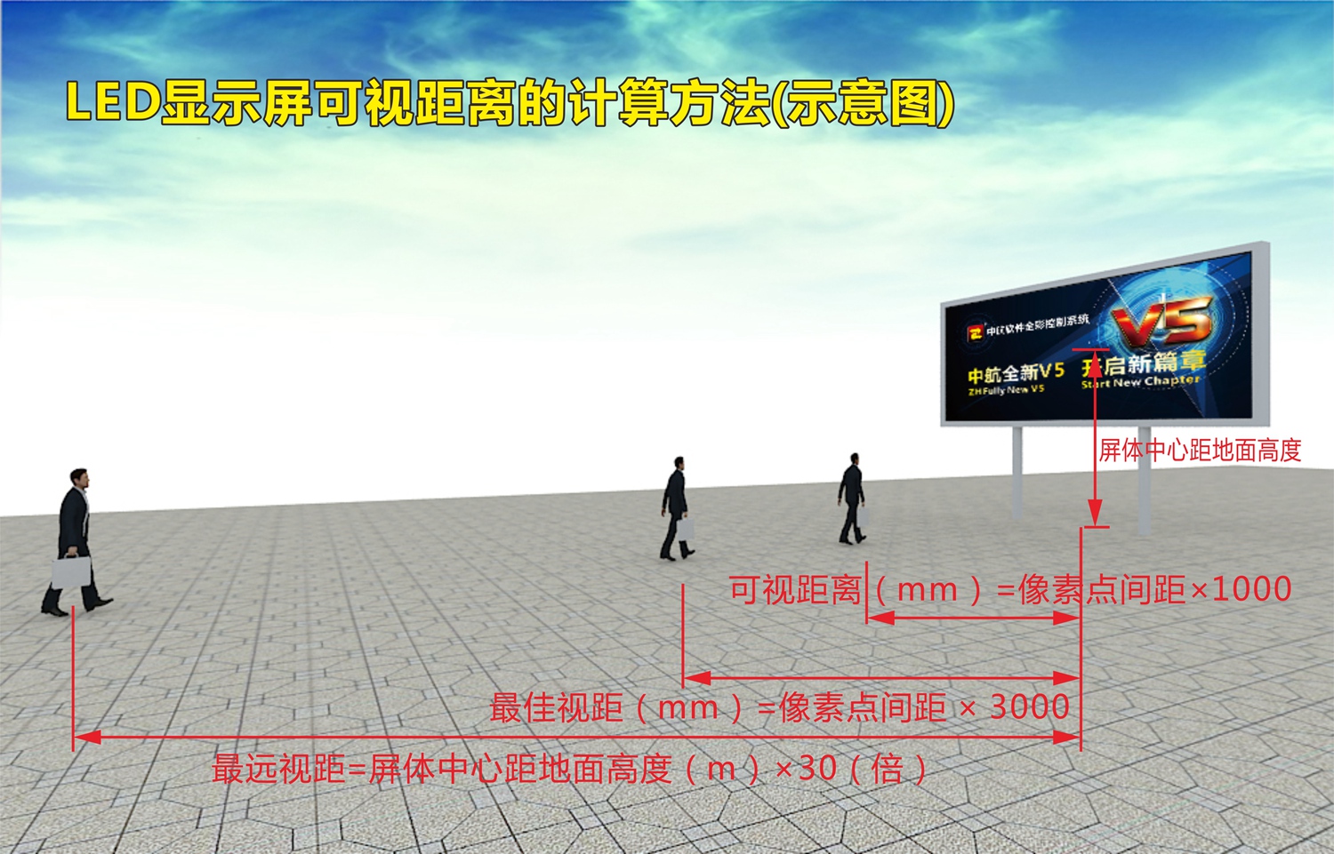 最遠視距=屏體中心距地面高度(m)×30(倍)