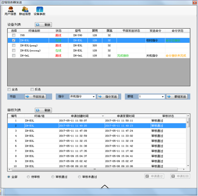 設備上線后會顯示藍色,且發送節目只能給上線設備。