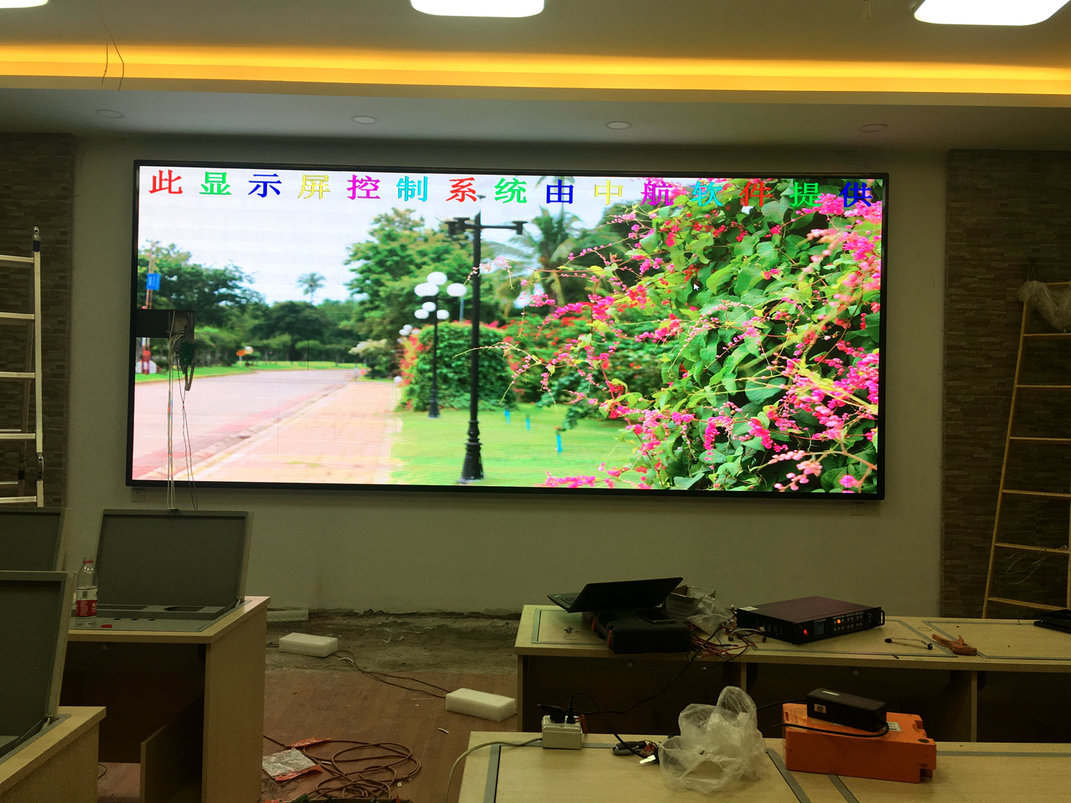 安徽省合肥市某飯店,P2.5總點數960*704,8張接收卡,一張發送卡,單卡最大帶載128*704。感謝安徽荊涂光電孫總對中航的信任與支持!