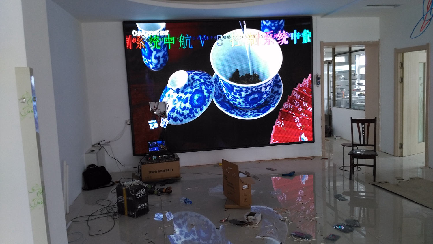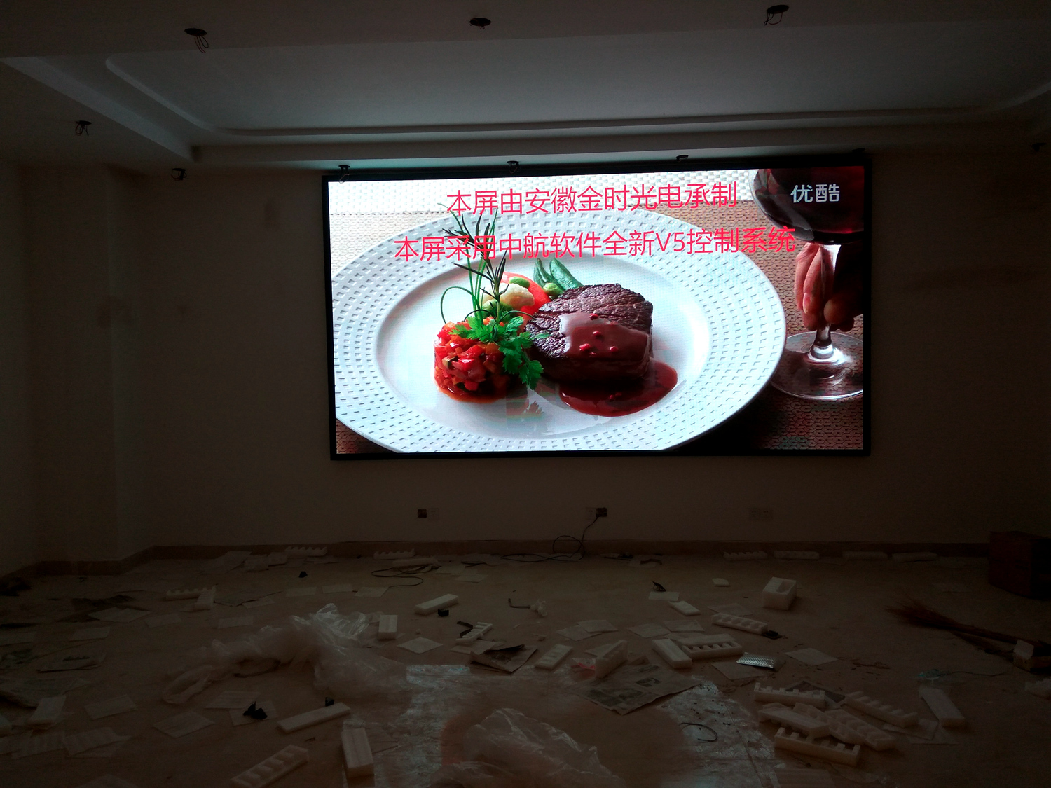 遼寧省鐵嶺市昌圖縣金家鎮(zhèn)某飯店,戶內(nèi)p5單卡帶載256高192寬,1張發(fā)送卡8張接收卡。中航V5全彩系統(tǒng),讓效果證明實力!
