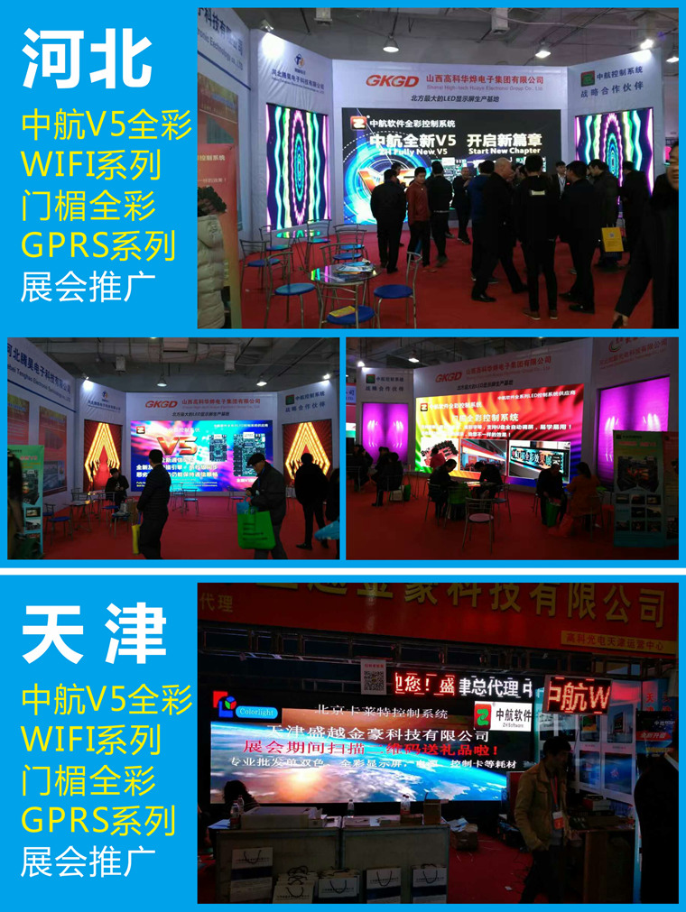 中航LED控制系統全新V5全彩控制系統、門楣全彩(高低灰)控制系統,在各地展會上更是如星閃耀。中航全新V5全彩控制系統的效果深受關注和喜愛,中航軟件用實力證明我們會做的更好!