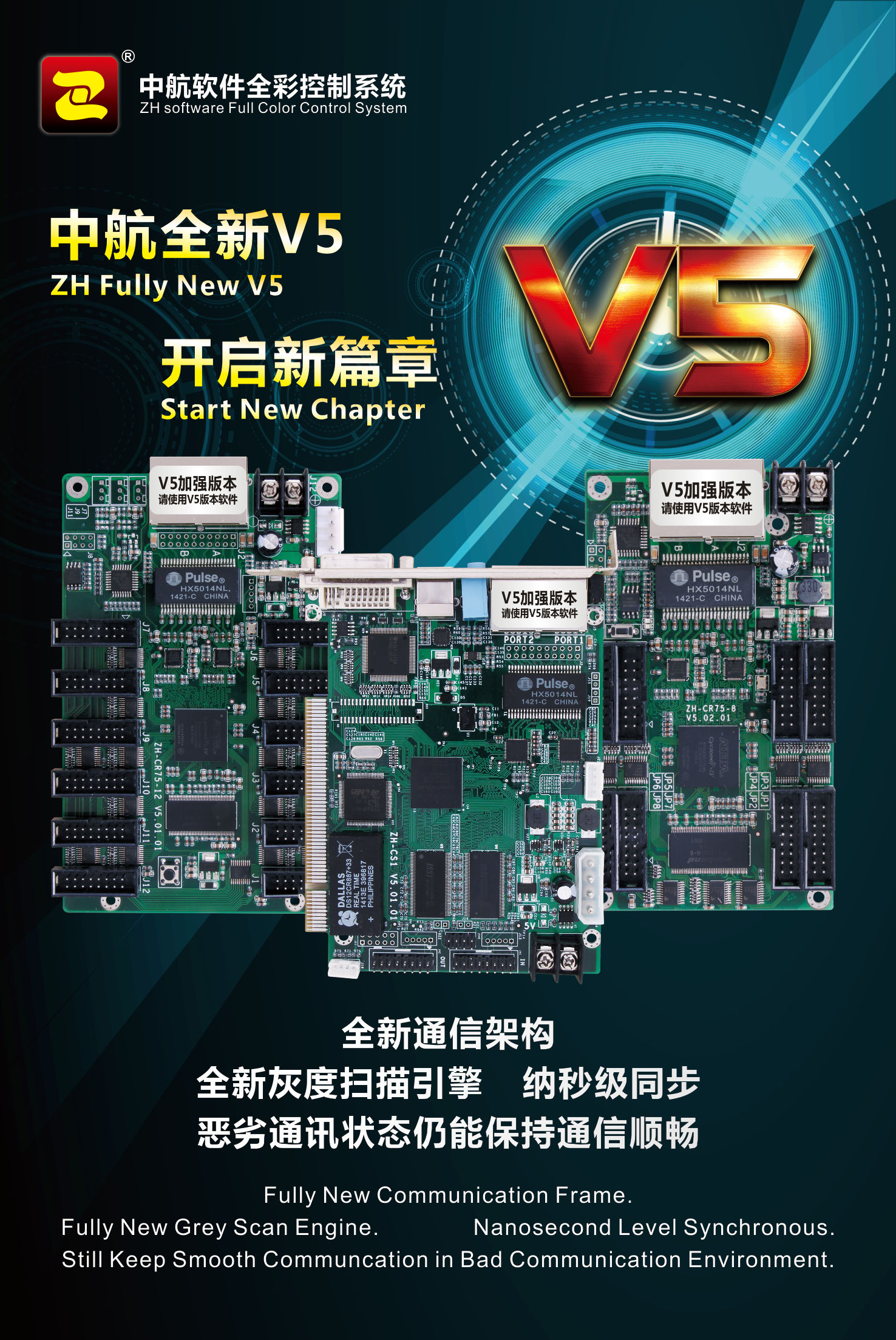 中航全彩控制系統(tǒng)V5加強版工程案例:無錫華萊塢p6高清全彩,一張發(fā)送卡,24張接收卡,單卡帶載192*256。中航全新V5控制系統(tǒng),搭載全新灰度掃描引擎!全新通信架構!刷新效率,刷新亮度取得大幅度提高!我們一直在努力!我們會努力做的更好!