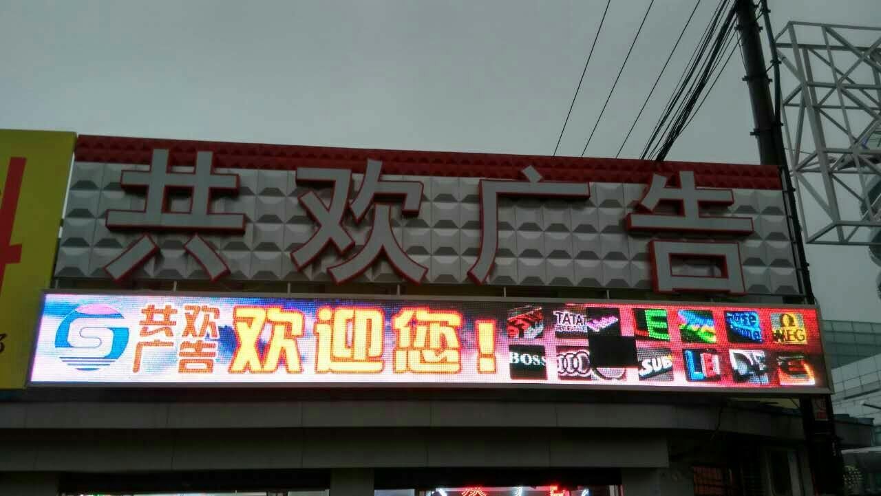 上海市共歡廣告P10門頭全彩768*80,1臺ZH-YH2播放盒(最大帶載1280*1024),3張ZH-CR75-12接收卡,中航異步全彩播放盒支持1080P高清解碼,無線WIFI,U盤,網(wǎng)線,SD卡等控制,播放流暢,無卡頓現(xiàn)象。做彩屏,用中航全彩系統(tǒng)!