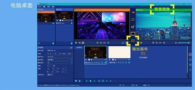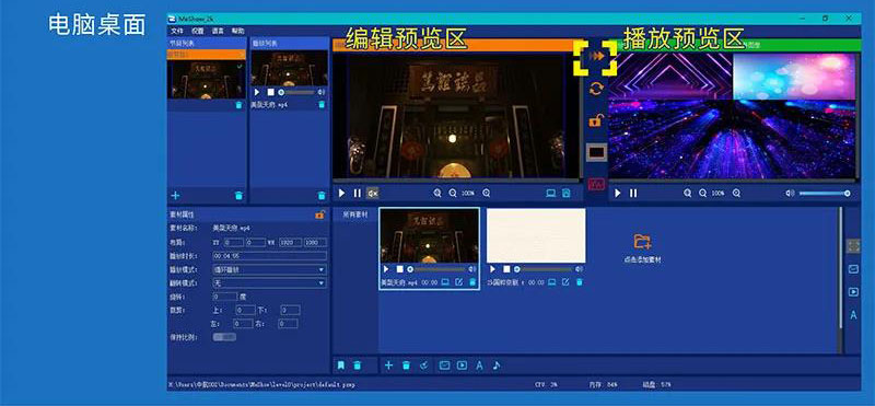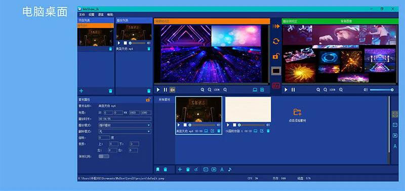 ·支持素材屬性調節:如:位置、大小角度等;