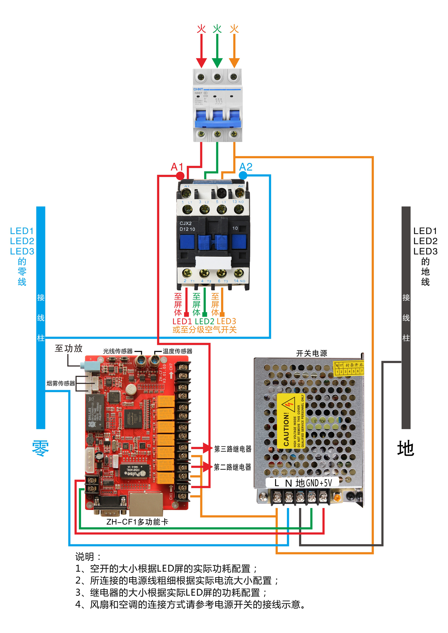 1、七路電源繼電開關。