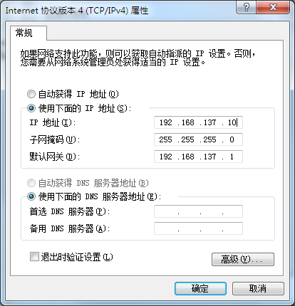 指定ip設置:設置設備的ip地址為可上網的ip段。