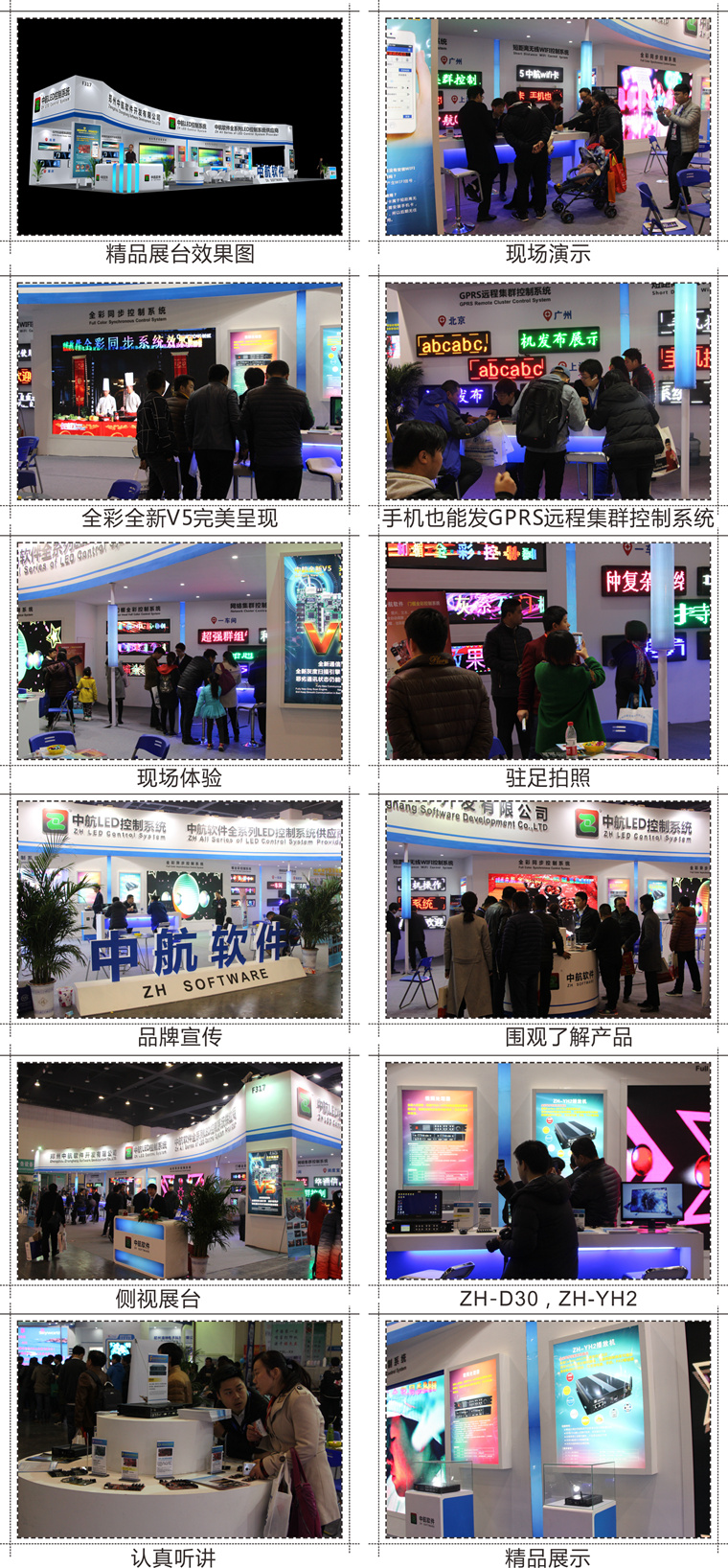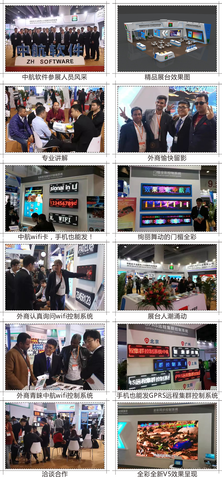 在剛剛過去不久的 2017廣州國際智能廣告標示及LED展覽會 和 2017春季中國中部(鄭州)LED照明展及各地區展會,中航軟件2017年展示產品系列:全新V5,視頻處理器,全彩同步系列,全彩異步系列,門楣全彩(高、低灰)系列,超長帶載網口卡,全面升級版WIFI系列,GPRS系列,網絡卡系列等。中航軟件全系列LED控制系統紛呈璀璨,吸引八方賓朋駐足、拍照、洽談!