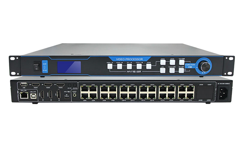ZH-Z24R 4K two-in-one video processor is a product developed by ZH to meet the convenience of LED large screen installation. It supports high-definition signal input such as HDMI and DP; it supports max pixel 4096*2160@60Hz, 24pcs Gigabit network output port, and supports max width 16384 pixels or a max height 8192 pixels. It adopts a new communication architecture, high refresh, high brightness, new grayscale scanning engine, nanosecond synchronization, and can maintain smooth communication in poor communication conditions, allowing users to experience a more colorful and better LED world!